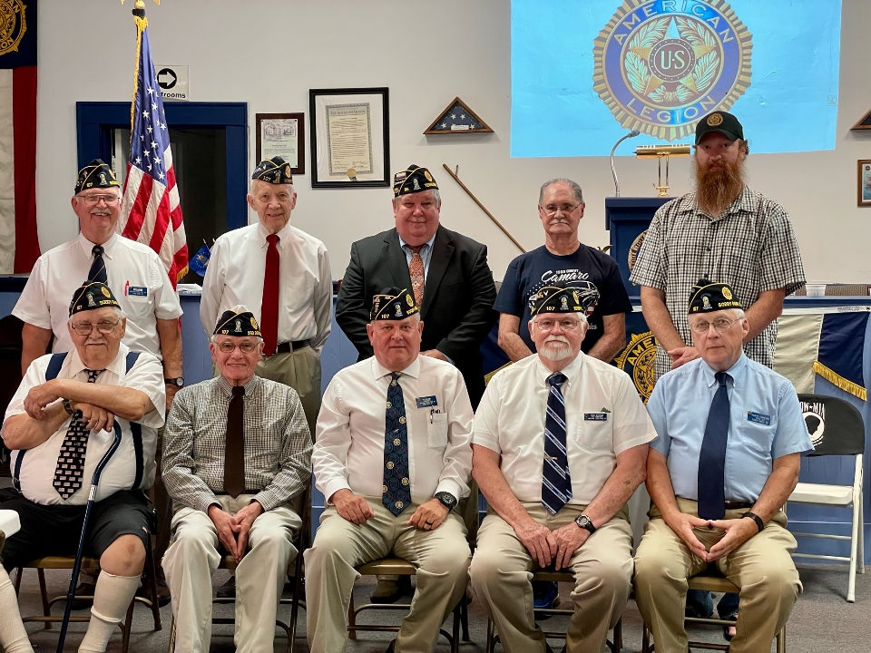 2022/2023 Officers/Executives. Seated from left: Lonnie Temples, Ron White, Rick Williams, Ron McSpadden, Bob Crawford. Standing from left: Roger Higgins, Roger Busse, (Guest), Tommie Burton, Kevin Phillips.